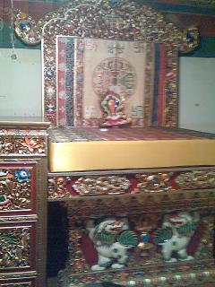 The wooden throne is a furniture which Rinpoche sits to give teachings and blessings in the monastery.