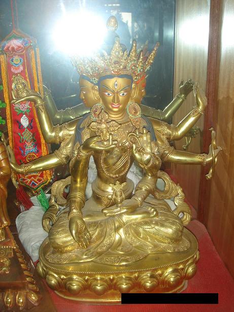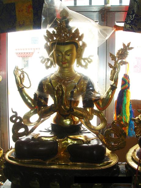 Bodhisattva Avalokitesvara is the most popular deity in Tibetan Buddhism. The name 'Avalokitesvara' means "the lord who looks upon the world with compassion" or "the lord who observes the sounds of the world". He made famous in the Mahayana sutras as a bodhisattva, an aspirant to enlightenment, in the Vajrayana system of the tantras, He is acknowledged as a fully enlightened Buddha manifesting in a vast array of meditational forms for the benefit of others. Bodhisattva Avalokitesvara is revered by many Buddhists as embodiment of the compassion of all the Buddhas of the ten directions and three times. He has vowed to free all sentient beings from suffering through His skilful means. In the Saddharma-pundarika Sutra (Lotus Sutra), it stated that Bodhisattva Avalokitesvara's skilful means are limitless and He can appear in any form in all the six realms of existence to relieve the suffering of the sentient beings who live there. He rescues those who call on Him when they are in danger and obstacles. He also has the power to grant children. And in the other Mahayana sutras, they mentioned that if one shows the devotion towards Bodhisattva Avalokitesvara, one will be reborn in Sukhavati after death.