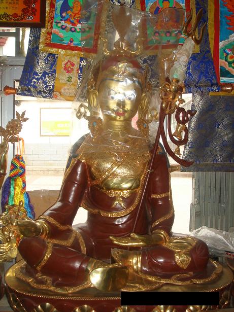 Guru Rinpoche or Guru Padmasambhava, the second Buddha of our time, is a Tantric Master from the Kingdom of Uddiyana (Urgyen), who brought Tantric Buddhism to Tibet in the 8th century AD. His legacy is found throughout the Himalayan region and in many caves He used for meditation one can still see handprints and footprints He impressed into solid rock, graphic testimony to the extraordinary psychic power of this Tantric Yogin. Guru Rinpoche is undoubtedly a historical figure but since His life is so entwined with many legends which displayed supernatural powers, modern people are likely difficult to find it too difficult to believe. However, two basic testaments which proved His existences are: 1. The famous Samye Monastery which was built under His directions, and 2. Tibetan Buddhism with all its body of teaching, learning and realisations which are so rich and profound that it is still converting and lifting the spiritual lifes of not only the Tibetans but people all over the world. In all, Guru Rinpoche spent His life in Tibet, between 747 AD to 765 AD, although some sources claimed that He was there for 50 years. Finally, at the Gungthang pass, He soared into the sky, riding His horse, and departed Tibet for Chamara (rnga yab gling), the south-western land of the Rakshasas. There He is said to remain, in the "immortal rainbow-body of great transference ('ja' lus 'pho ba chen po)." It is said that in different circumstances, He will manifest in various forms to those who have great devotion towards Him, chiefly eighth known as the The Eight Manifestations, or Names (gu ru mtshan brgyad). They are: 1. Padmavajra who severed the roots of the five poisons, 2. Padmaraja who provided mundane and ultimate benefits to sentient beings, 3. Padmasambhava who blessed beings endowed with faith, 4. Dorje Drollo who tamed the yakshas and haughty beings, 5. Suryaprabha who taught the Essence of Secret Mantra, 6. Sakyasimha who guided beings towards the Path of Liberation, 7. Simhanada who defeated the outside aggressors of non-Buddhists or heretics, and lastly 8. Dhimanvaruchi who showed the teachings of Sutra and Mantra.