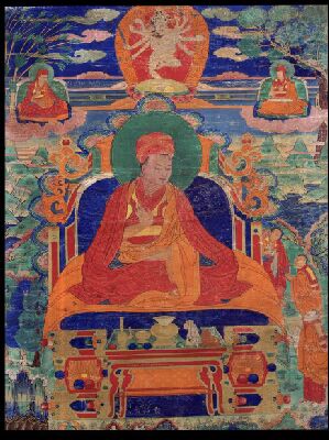 Realise that your own virtuous preceptor and all the Conquerors are truly equal and nondual in form, activity and essential nature. At all times, you should envision him in front of you, or seated atop the crown of your head, or within the lotus of your heart, and pray to him or meditate upon him as being nondual with yourself.